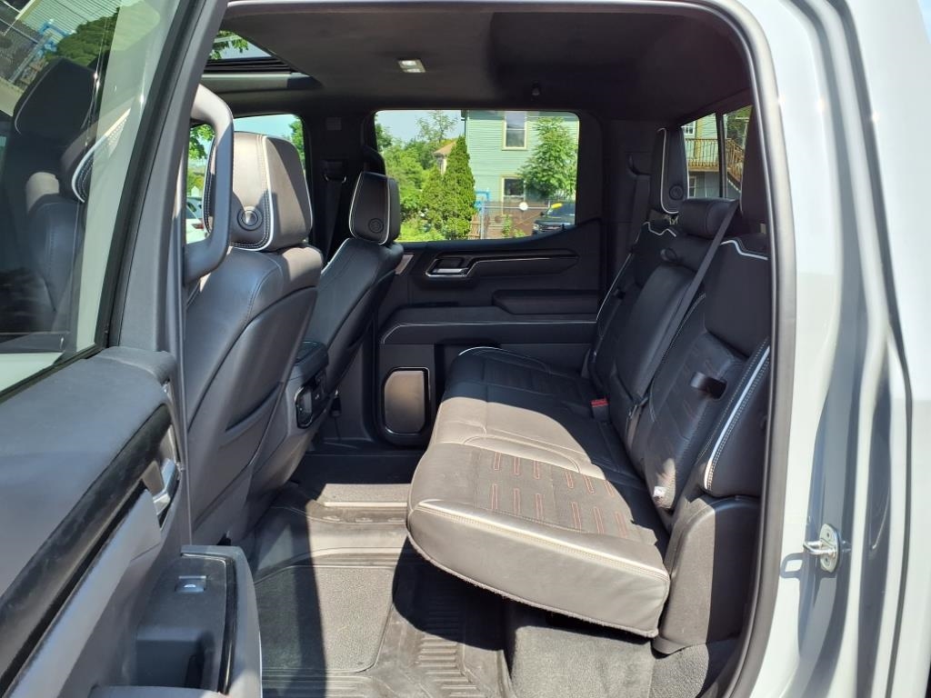 Safety is paramount with features like StabiliTrak, airbags, and innovative technology such as Hitch View and Trailer Side Blind Zone Alert. This truck even comes equipped with unique safety features like Rear Pedestrian Alert and Buckle to Drive.