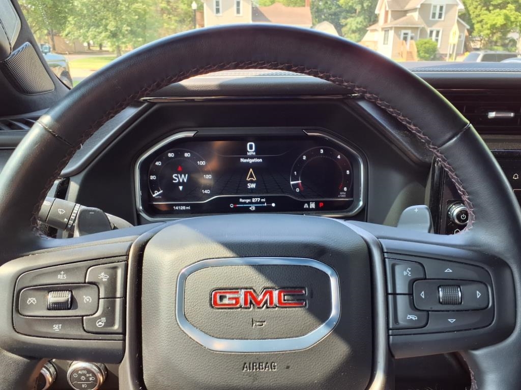 Step inside the spacious cabin where heated seats and dual-zone automatic climate control keep you comfortable, while the Wi-Fi hotspot and wireless charging station keep you connected on the go. The steering wheel audio controls and GMC Premium information Display make navigating a breeze, and the in-vehicle trailering app system ensures you're ready for any hauling task.