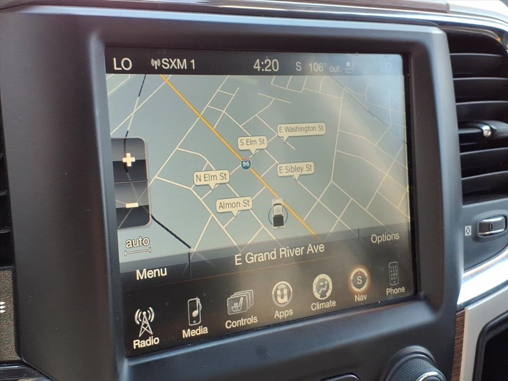 But that's not all - this RAM 1500 also boasts a stylish design with Chrome-Clad Aluminum wheels and a Chrome Grille that will turn heads wherever you go. The interior features a luxurious heated leather steering wheel and dual-zone automatic air conditioning for ultimate comfort.